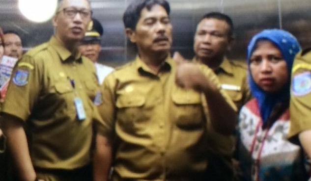 Wakil Walikota Tangsel Benyamin Davnie mendorong bawahanya di lift lantai empat Kantor
